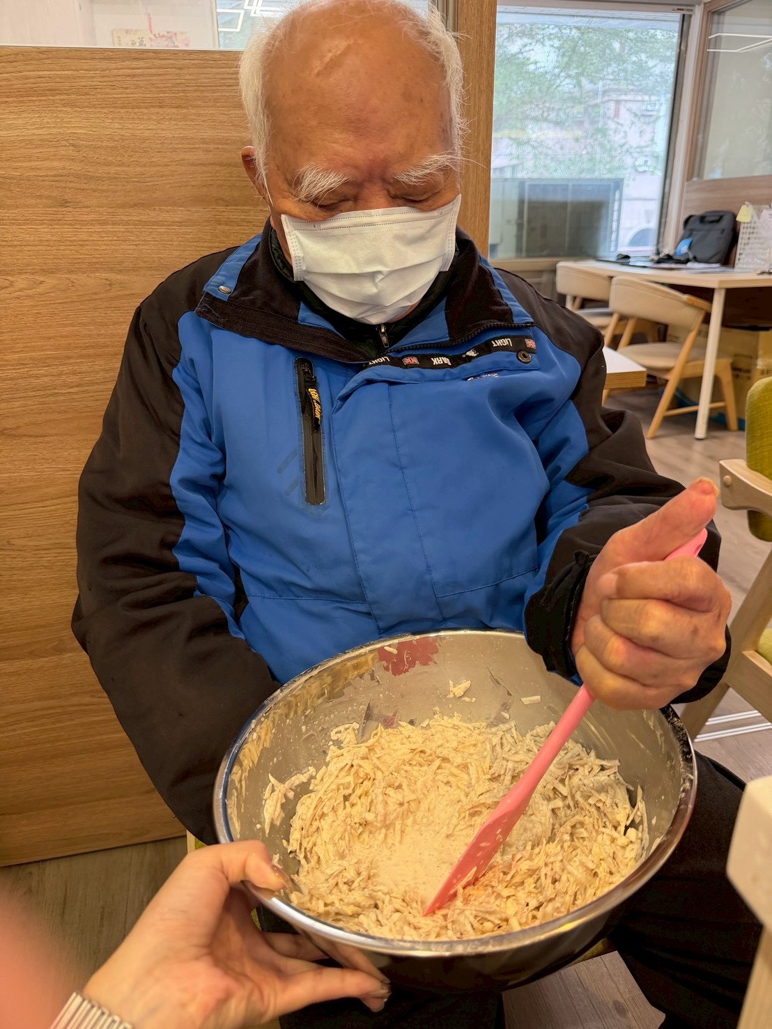 阿公阿嬤們一起動手做「芋頭籤」,現場瞬間變成芋頭小工坊~削芋頭、刨芋頭、抓芋頭,每位長輩的手都很俐落呢!👏🏻