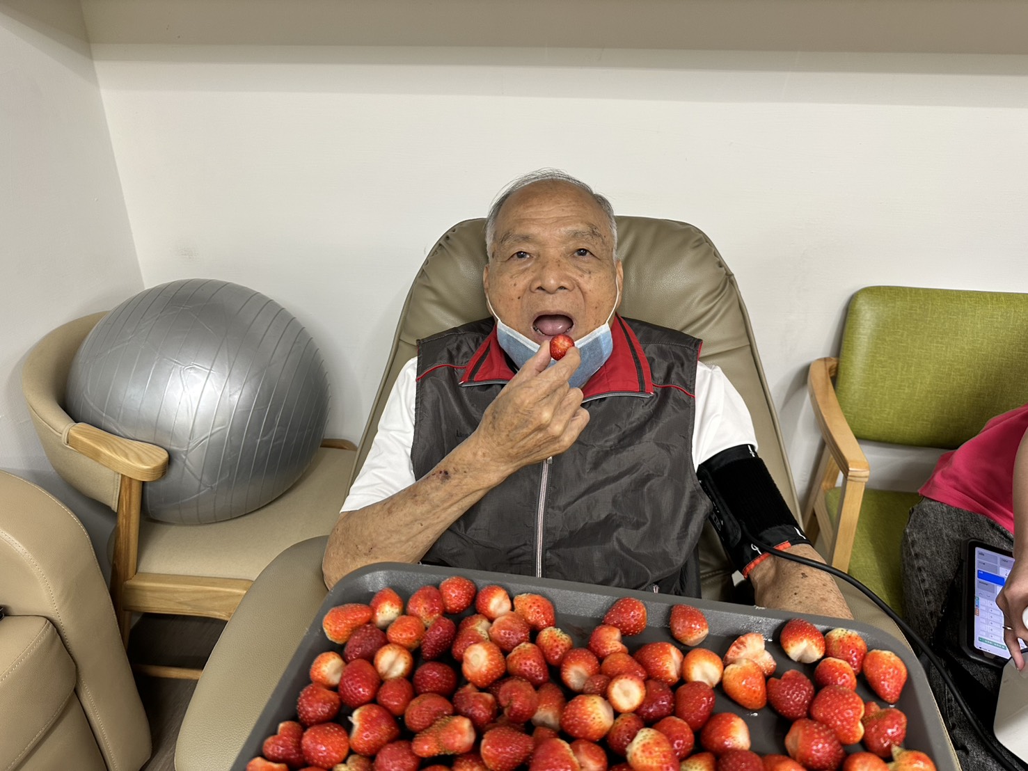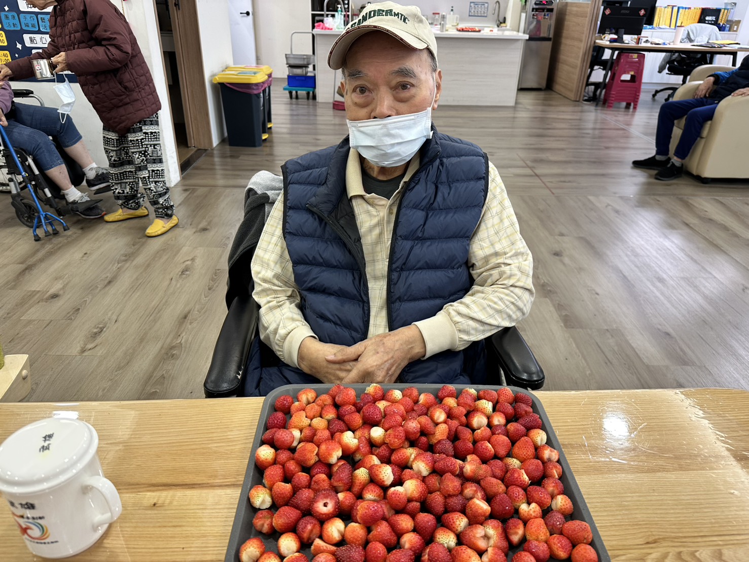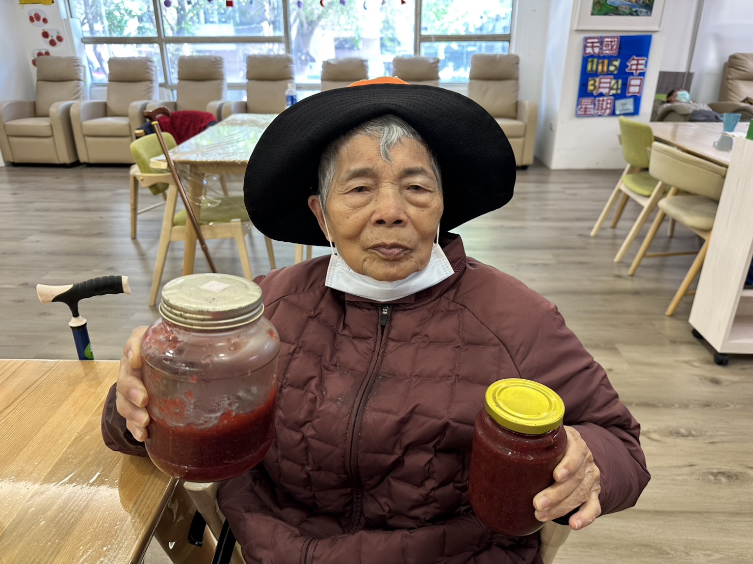帶長輩們一起製作草莓果醬,長輩們一聞到草莓香味就笑著說:「好想吃一口喔!」在幫忙處理草莓前,還有長輩忍不住偷偷拿了一顆先嚐嚐看,有人說酸、有人說甜,大家邊聊天邊分享味道,氣氛十分熱鬧。🍓
